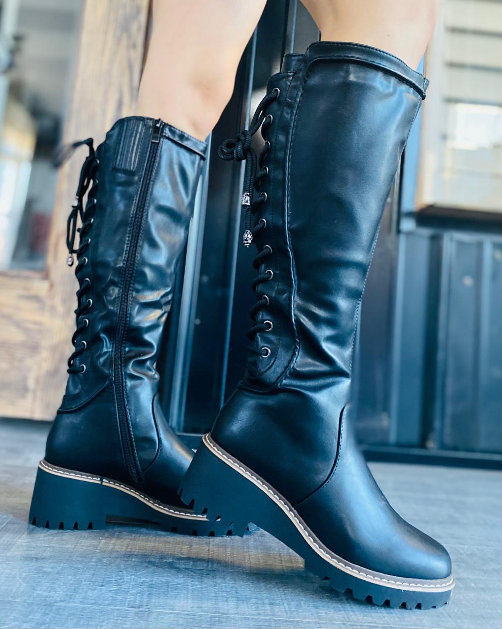 Luce con estilo y comodidad con nuestra Bota Larga de Piso AGENDA-24. Con un detalle único en la parte trasera y cintas para ajustar, ¡esta bota es perfecta para cualquier ocasión! Camina con confianza.