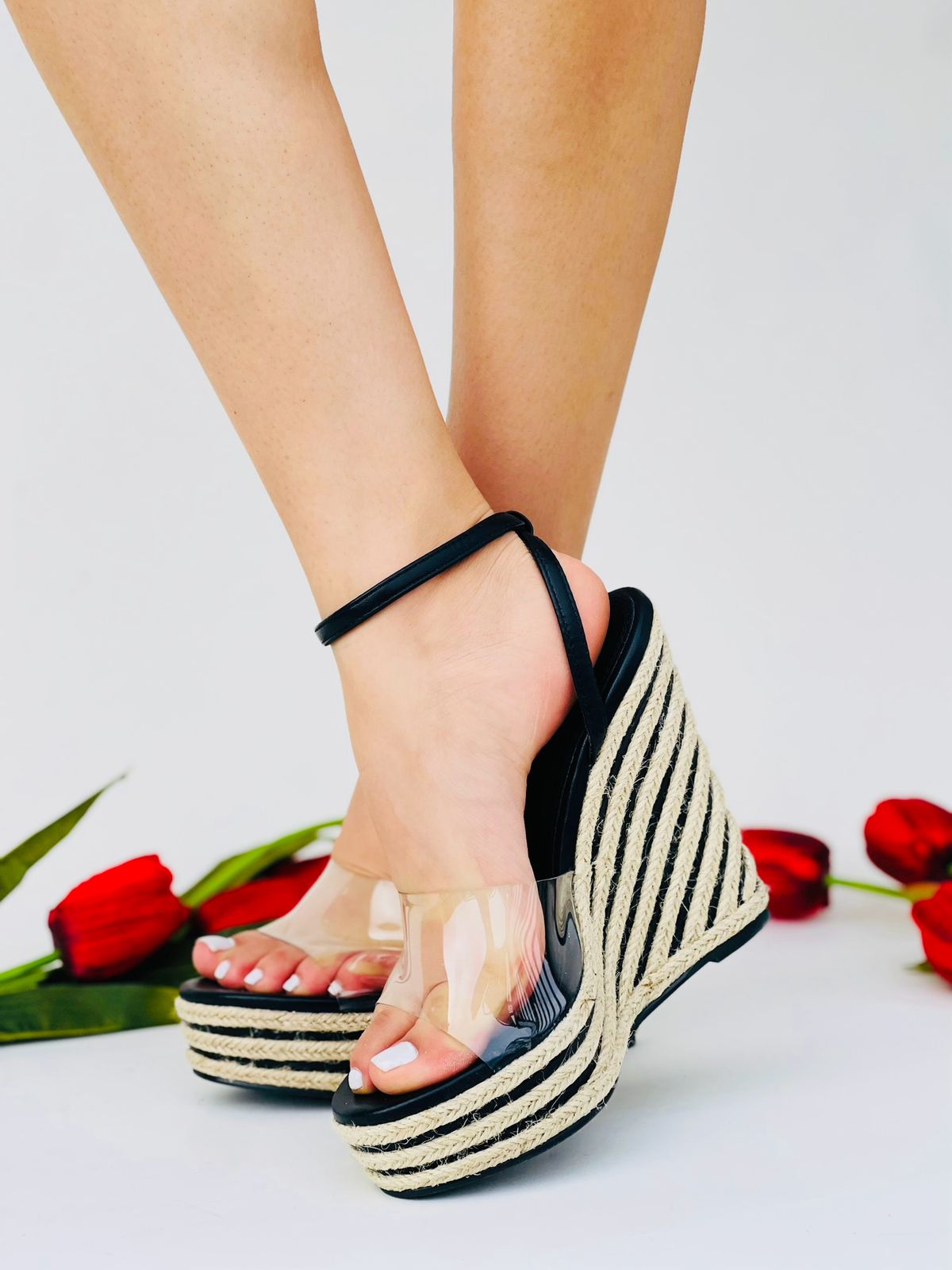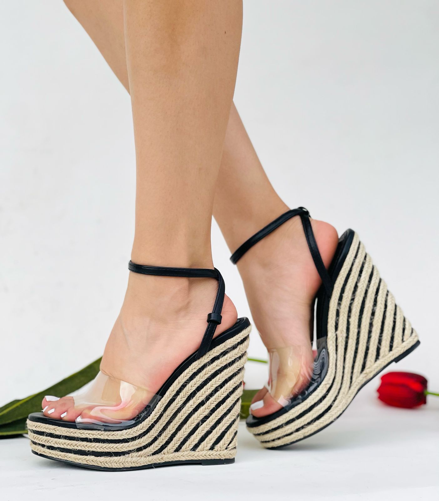 Estas alpargatas de plataforma combinan estilo y comodidad. Con su diseño transparente en la parte delantera, añaden un toque sofisticado a cualquier atuendo. Su plataforma te da altura y suaviza tus pasos, mientras que la transparencia crea un efecto artístico y chic. Perfectas para cualquier ocasión.